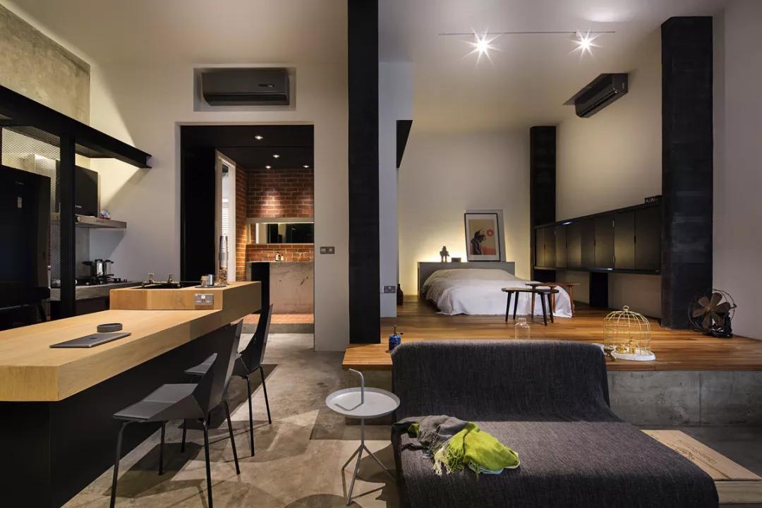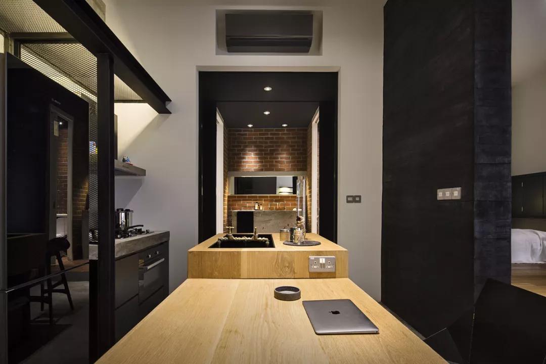 為了表達原始的工業室內設計理念,Moonstone Lane公寓擁有銅質,紅磚墻,鑄造混凝土和黑色鋼的紋理調色板。這間一室公寓是一個非常規的住所,確實滿足了業主對獨特住宅的渴望。