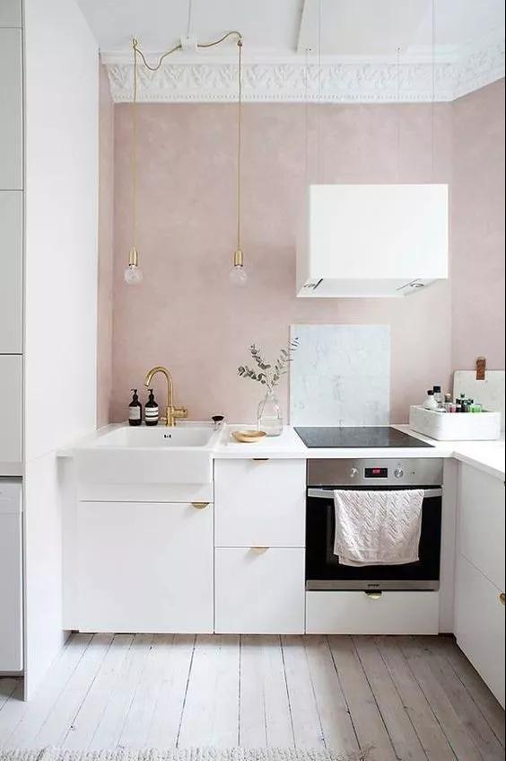 粉色是種華麗的顏色,它有很多種從最淺到最柔和的色調,可以在任何空間使用 - 不僅僅是在少女的房間。粉色通常被用于臥室,衣柜,浴室裝飾,但我們不會經常在廚房看到它。如果你想讓你家廚房脫穎而出并添加意想不到的感覺,可以試著添加粉色。如何做到這一點,又能避免無味的外觀?這里有一些別致的想法。
