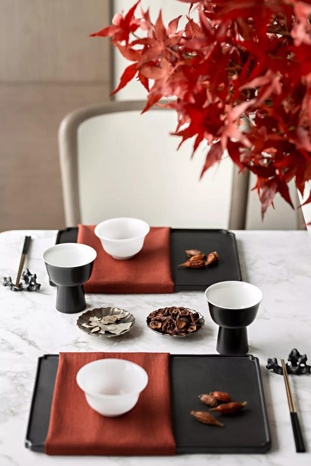 一捧楓葉,是餐廳最濃烈的色彩,跳脫卻不突兀,民以食為天,激發生命的律動。