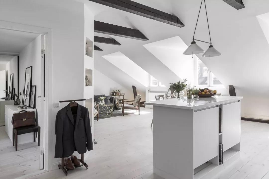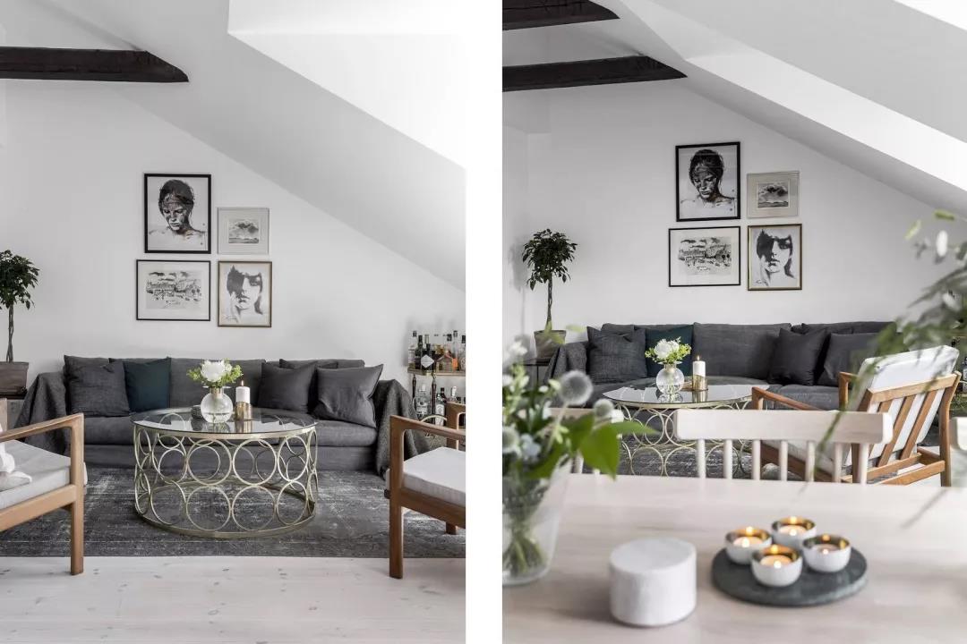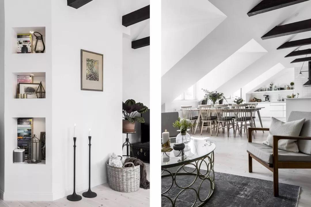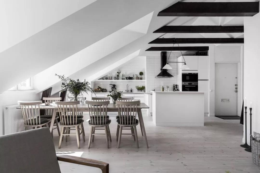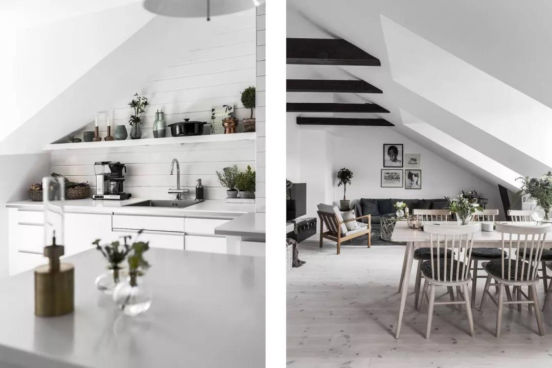 白色,黑色,灰色和溫暖的木質(zhì)紋理以及鉻元素,溫和而簡單地裝飾著這間瑞典的開放式閣樓。