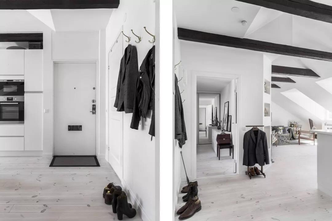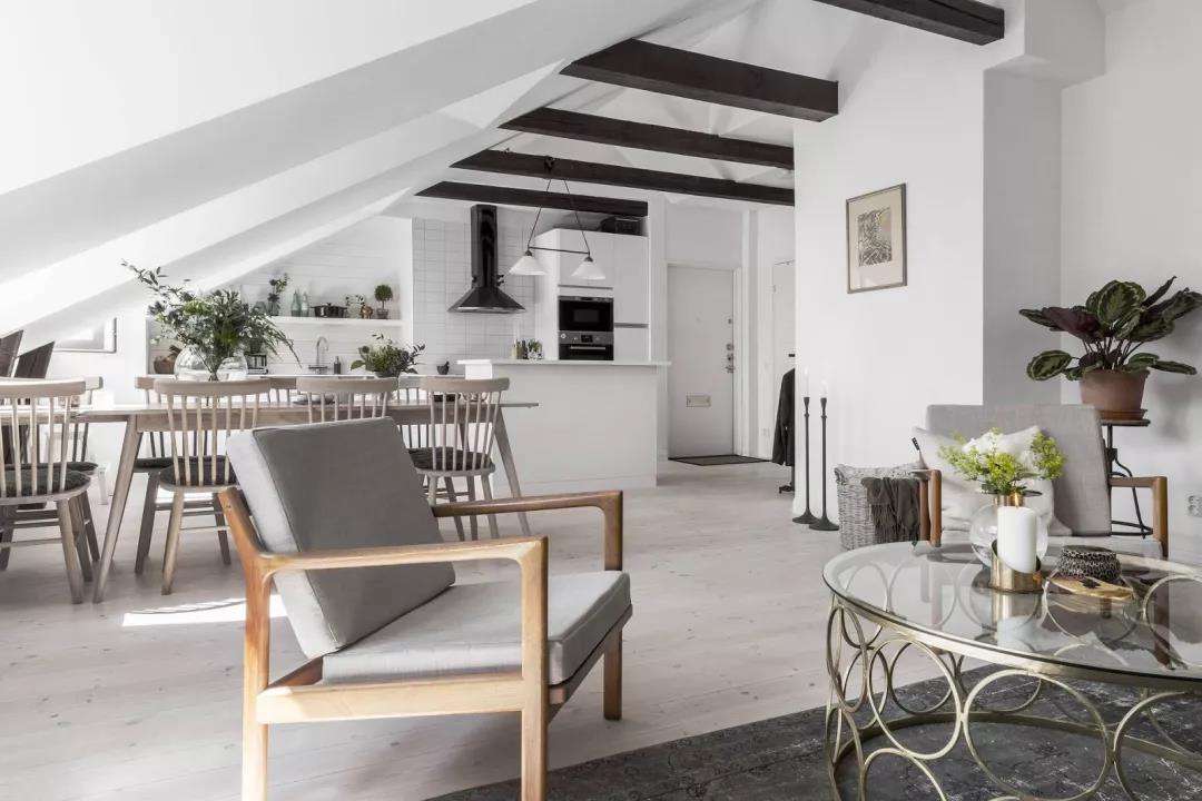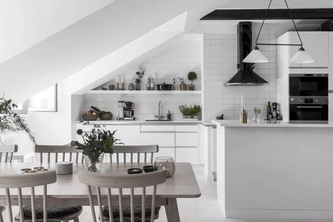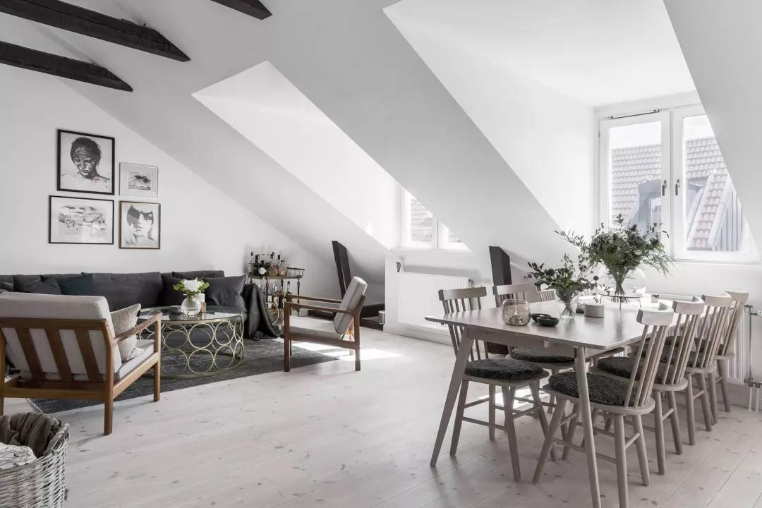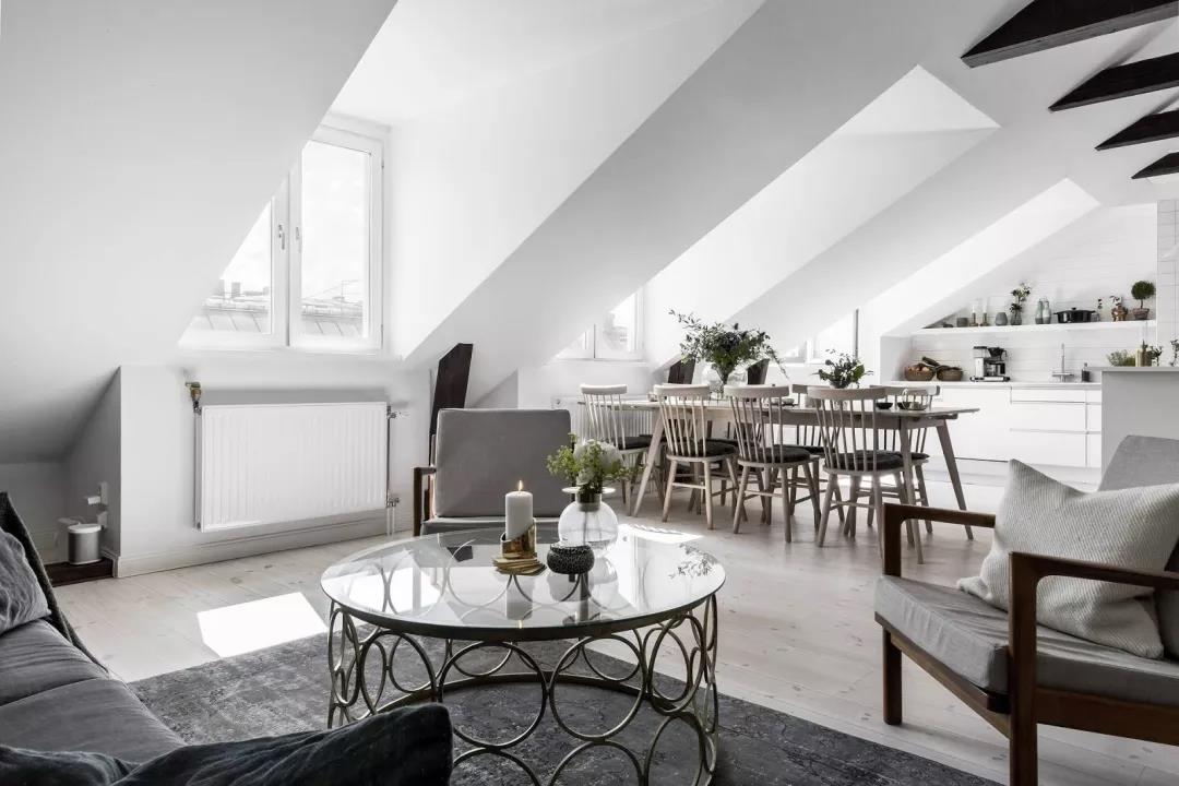 白色,黑色,灰色和溫暖的木質(zhì)紋理以及鉻元素,溫和而簡單地裝飾著這間瑞典的開放式閣樓。