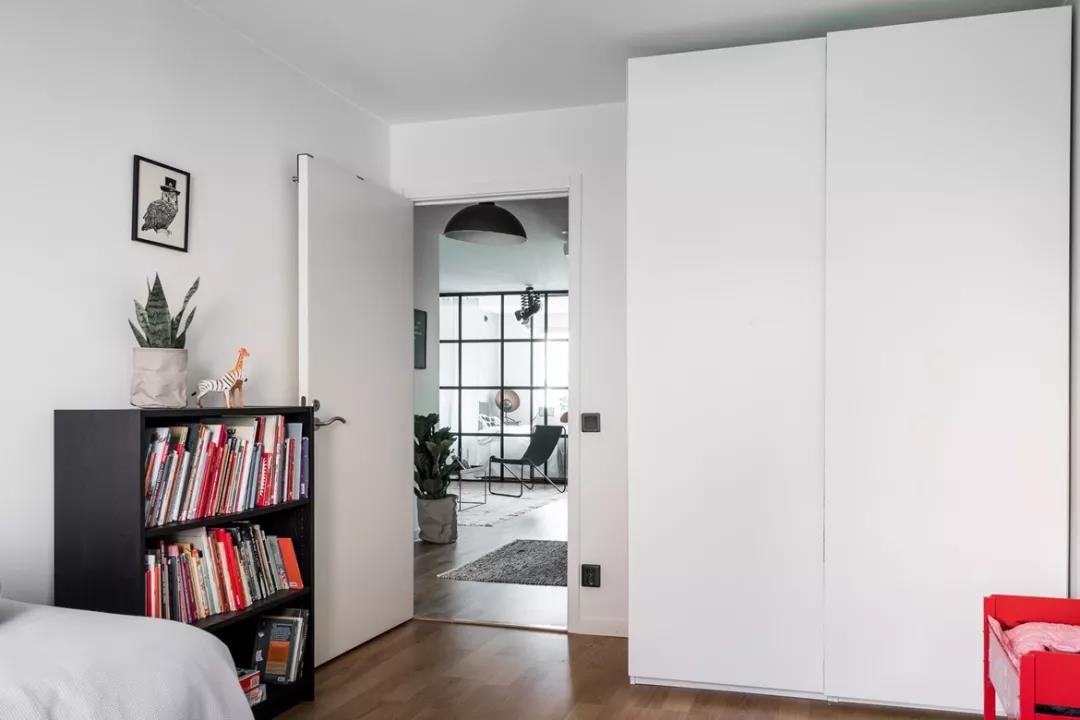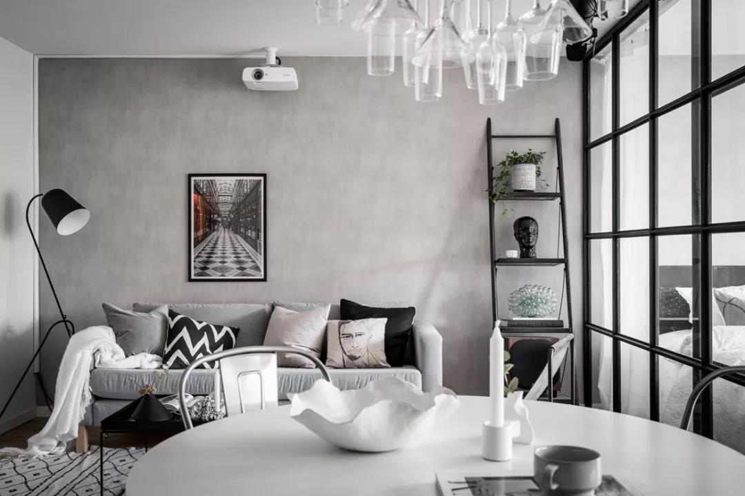 這間經(jīng)典黑白配色的瑞典三室公寓配有兩個額外的臥室,由于安裝了內(nèi)部玻璃隔斷,讓光線通過客廳,照到室內(nèi)。