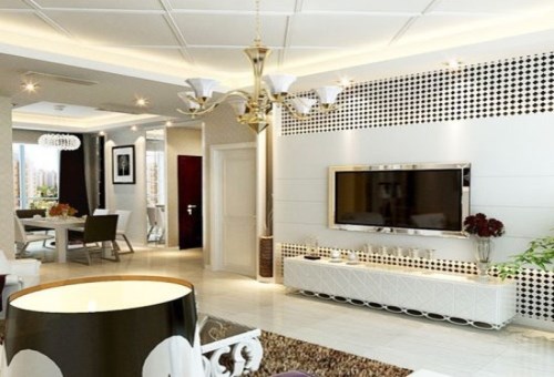 下面的這款背景墻使用了多種時尚元素一起打造,不僅有黑白細格子,還有金屬類的材質,讓單一的電視墻盡顯出高大上的感覺,并且在居室中還較為突出,可以說是一道美麗的風景線。
