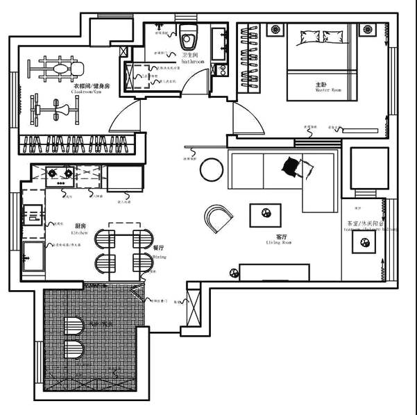 原始戶型中主臥的陽(yáng)光最充足,但客廳的陽(yáng)臺(tái)窗由于室外機(jī)的關(guān)系并不是很大,于是設(shè)計(jì)師的腦海里有了一個(gè)大膽的想法。