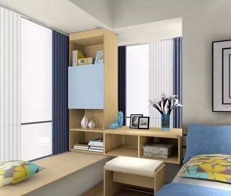 對于小面積臥室來說,臥室不能擺放太多的家具,但可以利用飄窗,將飄窗設計成床頭柜,只需將床移到飄窗旁,這樣不占臥室空間面積的情況下,又多出了一個使用空間。