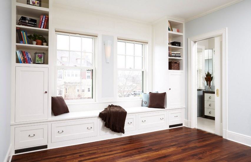 復合地板類跟木工板的特點一樣不怕潮,冬日一樣不會感覺寒冷,而且價格也不是很貴。圖中的復合地板飄窗利用了剩余的復合地板制作而成,在節約成本的同時,而且還能使房間的整體風格更加統一和諧哦。不夠提醒朋友們,在進行裝潢設計之前,一定要先把飄窗的設計弄好,這樣整體的設計才會更加美觀哦!