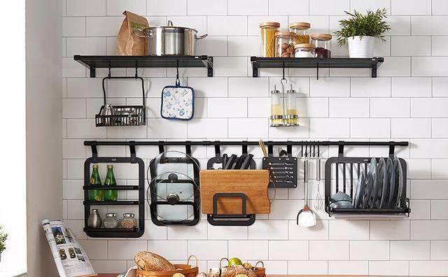 這款壁掛收納架承重效果超強,可放大件物品。款式設計簡約時尚,寬度適中合理,小戶型廚房必不可少。