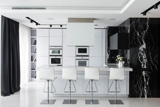 黑白相映成趣,這間公寓充分利用了這一點。Studio Geometrix Design幾乎只使用這兩種顏色來裝飾這個地方。客廳幾乎全是黑色,廚房幾乎全是白色。