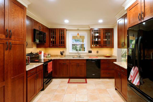 雖然白色家電比較自命不凡,通常只有與淺色家具搭配時才看起來不錯,但黑色廚房家電往往是兩者中通用性更高的。您可以在這里看到它們在帶有深色木質櫥柜的廚房中的特色,而且看起來精美。