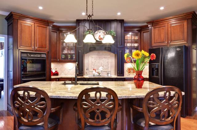 黑色廚房電器也傾向于具有更經典的外觀,這使其成為各種樣式的不錯選擇。Turan Designs設計的傳統廚房就是一個很好的例子。它有深色的木質櫥柜,花崗巖臺面和石灰華后擋板,黑色家電在這種混合物中看起來很合適。