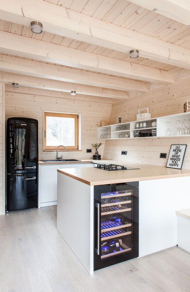 這座房子的室內設計是由許多輕木定義的,如果不精心選擇深色元素(例如黑色廚房用具和一些家具),它們將變得勢不可擋和無聊。這是由PIKAPLUS工作室創建的設計。