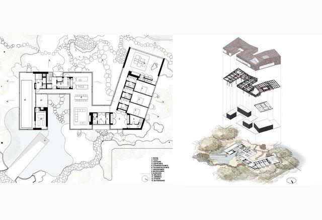 平面圖和地形,說明了仔細的建筑布局和自然景觀中的同情位置。