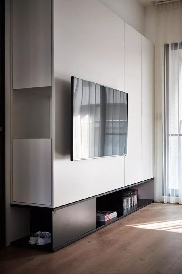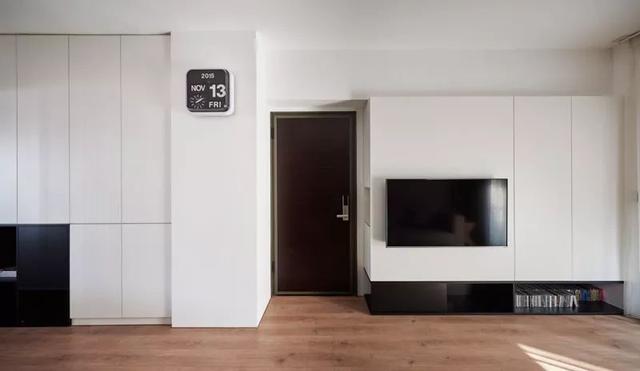 入戶的區域基本上是很小了,用了電視組合柜的一部分作為玄關柜,可以放鞋子和包包用。