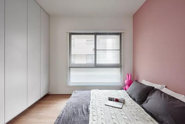 柜子也是用了簡便的白色定制柜,窗戶用了百葉簾,保證通風和采光。