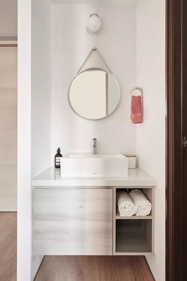 衛浴是兩分離的空間,用了防潮六角花紋做防潮處理,家里的小柜子大都是懸空的,這樣比較好打理。