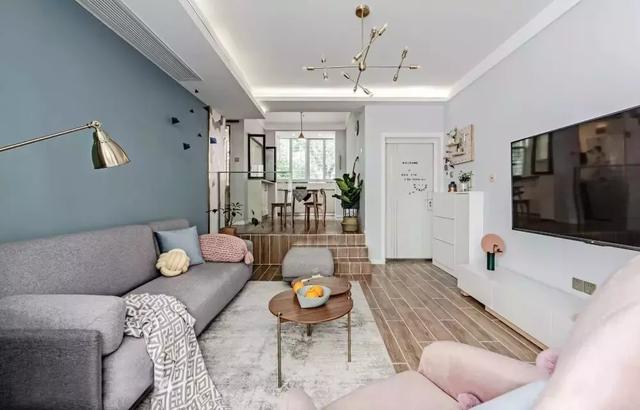 簡約舒適的北歐風裝修的三居室,全屋使用了藍色、粉色以及棕色的色調搭配,營造出一個清新、浪漫的格調,而且再加上一些軟裝的搭配,讓整個家還多了一份精致與美觀!