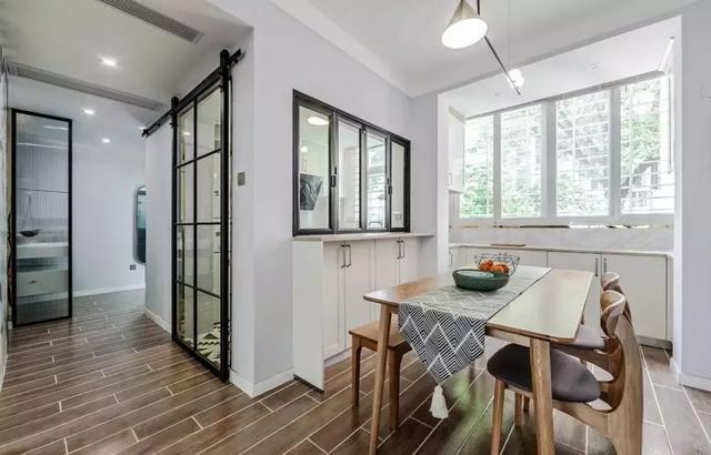 餐廳與廚房之間的墻面也做了內窗,這樣就讓彼此兩個空間都顯得更加的通透與明亮~