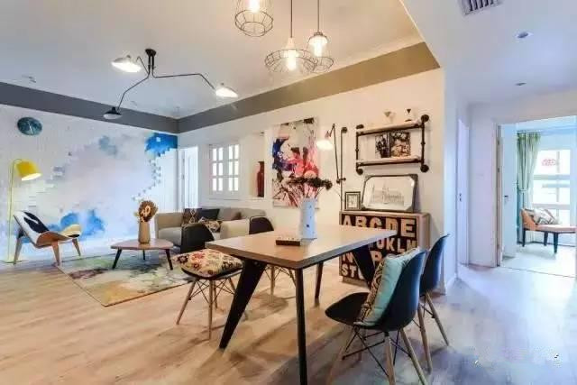 小空間的客餐廳如果想要隔斷,可以從一些小細節入手,比如在餐廳頂部單獨設吊燈,而不是共用一個吊燈。