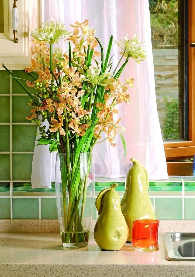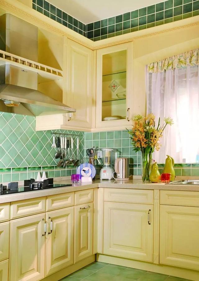 香草色廚房自帶格子瓷磚,經典配方又十分契合環境,干凈而富有活力。
