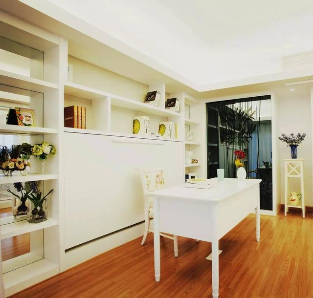 書房干凈整潔,背靠裝飾收納兩不誤的墻體柜,各類鏡面設計讓家居顯寬闊,裝飾性能更豐富。