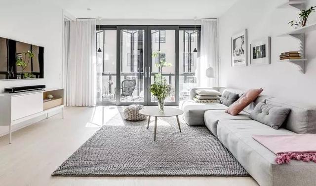 5 | 這款北歐風格客廳用灰色為我們詮釋了簡單的定義。而它又不是完全的灰白色調,在此基礎上還加上了粉色,粉灰反顯少女心,與粉藍相比它更為沉穩一些。像這樣確定一種主色調再用一種顏色點綴的做法也非常常見,能起到相同作用的還有明黃色,喜歡的朋友不妨一試。