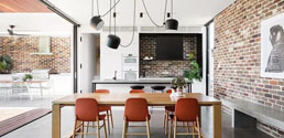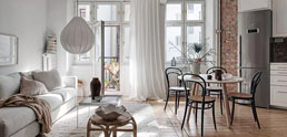 客廳餐廳一體,是將兩個空間合在一起——很顯然,此時再用空間隔斷設計,就未被了當初合并它們的初衷——既然現在要分離,當初何必在一起!