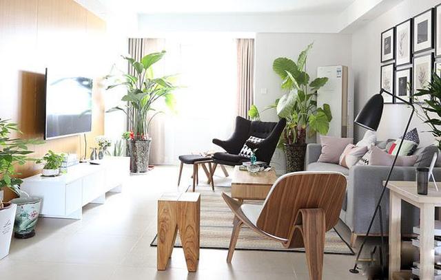 還有就是北歐風格自然少不了綠植的參與,特別是對于淺色的墻面來說,足以起到畫龍點睛的效果。就比如說琴葉榕、龜背竹、散尾葵等這種綠葉子的盆栽。而花盆外面可以套一個由麻繩編織的,這樣顏色還可以與電視柜相呼應起來。