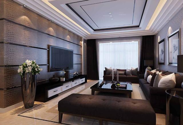 像這種深色系的客廳整體看上去會更沉穩一些,主要就是以黑棕色為主,深色的墻壁最好是搭配白色的地面磚,或者是亮色的燈具,這樣可以起到提亮整個屋子的效果!至于沙發的顏色,灰色、黑色都可以,但要注意一點,就是不能與后面沙發墻的顏色相撞。
