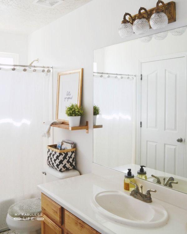 最后但并非最不重要的,來自hello-hayley的一個(gè)非常酷的項(xiàng)目。它展示了如何利用廁所上方的空間,制作一個(gè)質(zhì)樸的工業(yè)書架,讓你把物品整理成籃子和盒子,或者在頂部的表面展示物品。還有掛鉤,你可以掛毛巾或其他東西,包括裝飾品。這些裝飾性的字母看起來很漂亮,但你絕對(duì)可以想出其他更適合你浴室的創(chuàng)意。