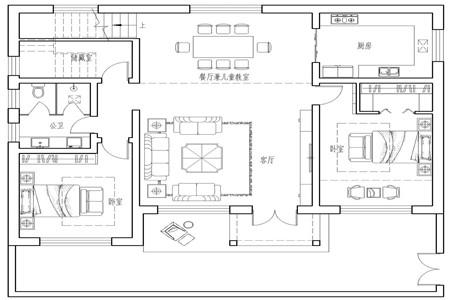 房子進門后,客廳和餐廳采用了開敞設計,沒有任何的阻隔,使得整體空間十分通透和大氣。一層和二層都設計有吃飯的地方,一層餐廳位置在有需要時,還可作為其他用途使用,若人數較多,也可占用部分客廳空間。