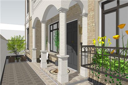 客廳和玄關對應空間采用兩拱三柱的裝飾,通過線條變化和裝飾讓入戶空間顯得十分大氣。二層臥室的陽臺欄桿采用了經典的歐式羅馬柱,提升了空間的連貫性,空間變化在屋頂處通過不同線條展現不一樣的層次。