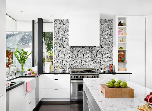 如果有疑問,請(qǐng)相信顏色。如果你的廚房看起來有點(diǎn)__太_小顏色是一種方式。選擇一個(gè)帶有大膽色彩的瓷磚后擋板,或者甚至是一個(gè)大膽的墻紙,你需要的一切都能讓房間恢復(fù)生機(jī),而不需要任何額外的裝飾。你甚至可以玩地板。