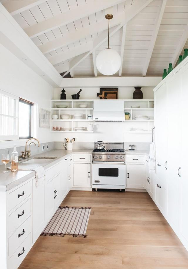 無論你的廚房是長(zhǎng)的還是小的還是窄的,使用全白色顯示器都是完美的美容和制作方法。the space感覺越來越大,越來越合二為一。