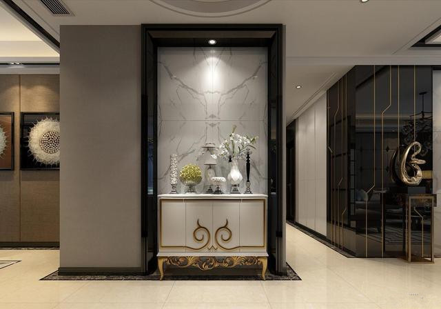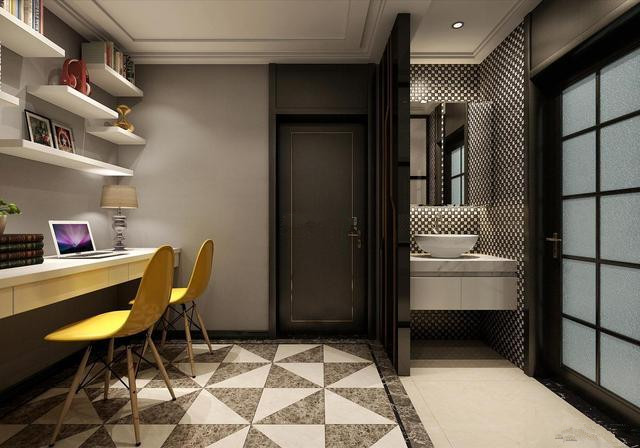 在玄關(guān)處定做書架和書桌,既省空間又美觀,不失為一大亮點