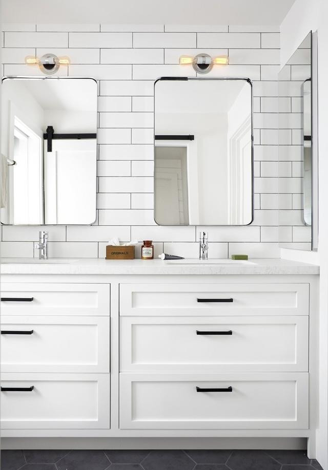 再次,你需要或想要最終的簡單和干凈的線條,然后裝飾你涵蓋??纯催@個拋光的白色梳妝臺設計。其黑色硬件和紋理瓷磚對應,您可以得到興趣而不必大驚小怪。