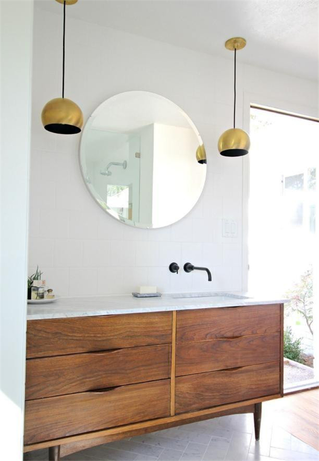 您也可以輕松地創建一個具有中世紀現代感的浴室。不是每一個當代空間都需要冷酷個性的剛性邊緣。相反,你可以重新調整舊件的用途,給它們新的生活,就像你看到的,這個虛榮的設計是有目的的!