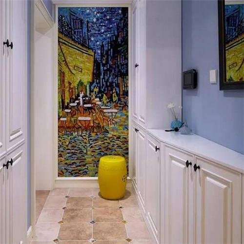 一打開門就被眼前這幅畫所吸引了,這是梵高的作品,在家里掛上這幅畫,使整個家里都充滿了藝術氣息,同時也可以看出主人是一個熱愛文學熱愛藝術的人。在走道的兩邊各做了一排的儲物柜,為家里增加了儲物空間,還使玄關看起來更加干凈整潔。