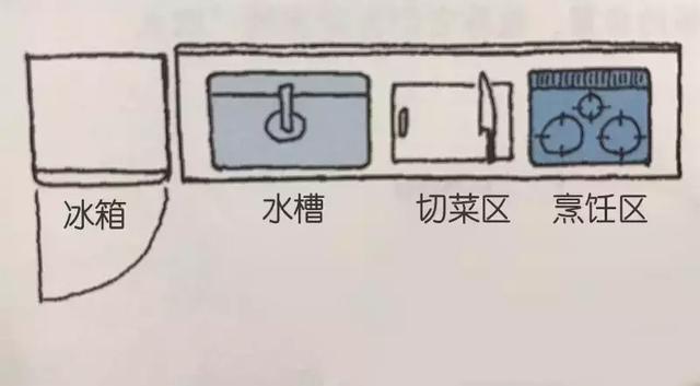 從料理區到爐灶,從水槽到冰箱以及從水槽到垃圾箱之間的距離需要控制的兩步之內。