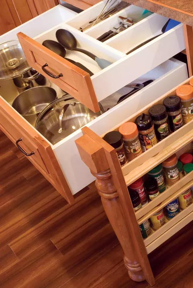 灶具和調料,涉及烹飪過程的任何事情都需要在范圍中心內。考慮將一個區域專門放常用的鍋碗瓢盆等炊具,還要留一塊位置給常用的調料區。