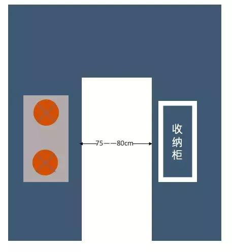 如果經常一個人在廚房做飯,那么鍋灶和鍋灶對面的收納空間,最佳的收納距離為75——80cm,主要保證第二個人勉強通過即可。