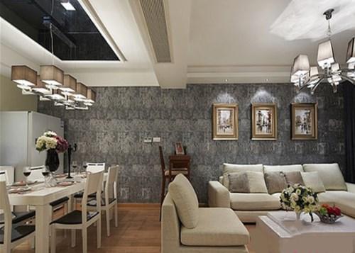 很好的將客廳與餐廳融合在一個空間,墻紙的布置給家居增添華美,整體的色調也比較統一,就連燈飾等也屬于同一個系列,讓原本屬于家居中的兩個空間,很完美的結合在了一起,既要大氣又優雅。