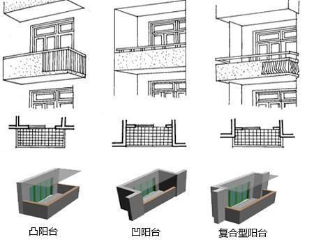 一般來說陽臺主要分為凹陽臺、凸陽臺。凸陽臺分為壓梁式或者是挑梁式,承重能力沒有凹陽臺好,所以這類陽臺不建議封閉后放太多東西。而凹陽臺承重能力強(qiáng),適合封閉起來使用。還有復(fù)合型陽臺,處于中間位置。不同的陽臺類型,封閉的樣式也不一樣,如果是凹陽臺只需封閉一個面,如果是凸陽臺,則三面都需要封閉。