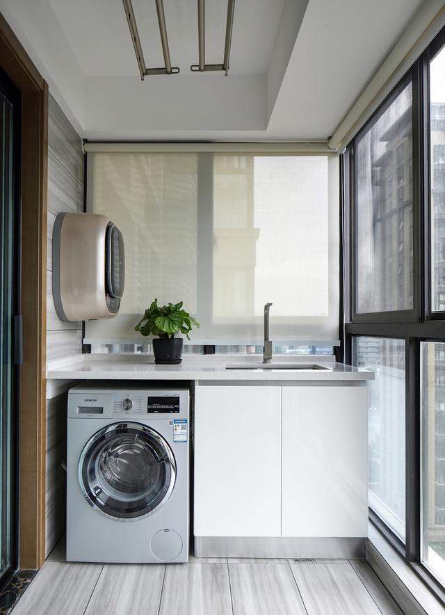 把陽臺封閉起來做成洗衣區(qū)是非常多人的選擇,洗衣機(jī)、洗手臺讓陽臺使用起來更加方便快捷。