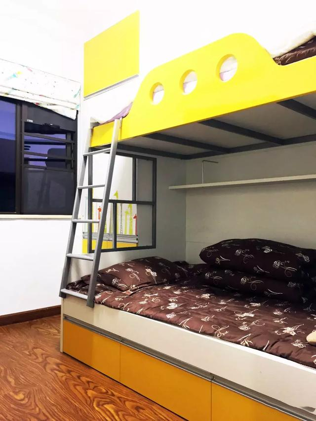 ▲家有倆小孩,所以兒童房設計了平行的上下床,功能性十足。在色彩方面,高彩度的黃色很顯眼,深淺不同的黃色營造了“活力”之感。