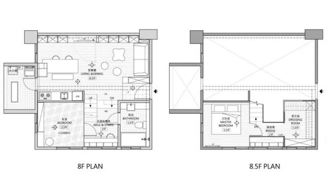 先來看看戶型圖,日常生活和工作放在樓下,休息的區域在二樓,大體就是這樣一個思路~