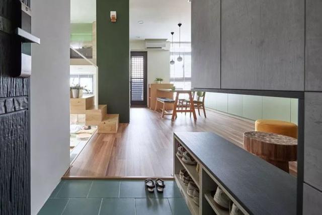 雖然戶型很小,但還是表現出了玄關,而為了避免隔斷過多浪費空間,設計者用換鞋的矮柜進行隔斷,一舉兩得~
