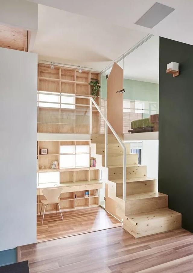 樓梯間與以往見到的大有不同,是一個充滿陽光的地方,在這里擺放上一張書桌和柜子后,工作、學習、收納……功能多多!