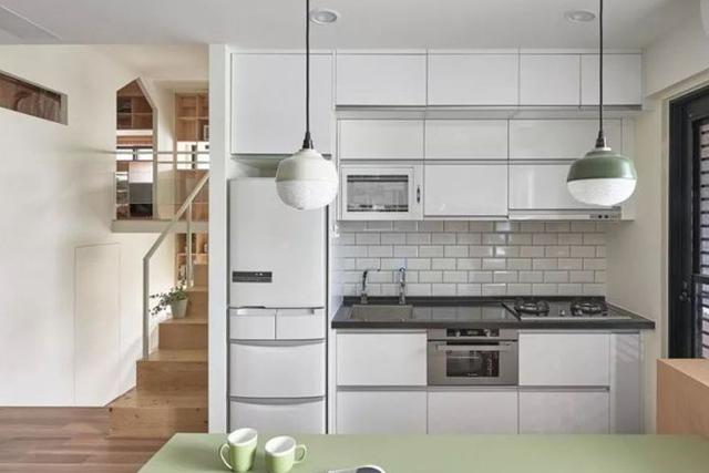 小小的廚房全部采用了嵌入式廚電,設備一應俱全,日常兩三口之家生活完全夠用。