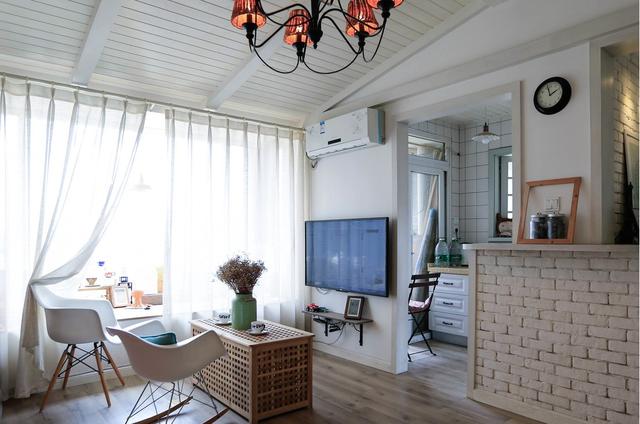 由于戶型比較小,業主只在客廳的位置安裝了空調,這樣讓整空間看起來更加寬敞。簡約的靠背椅和白色的窗紗相互搭配,給人一種朦朦朧朧的美。
