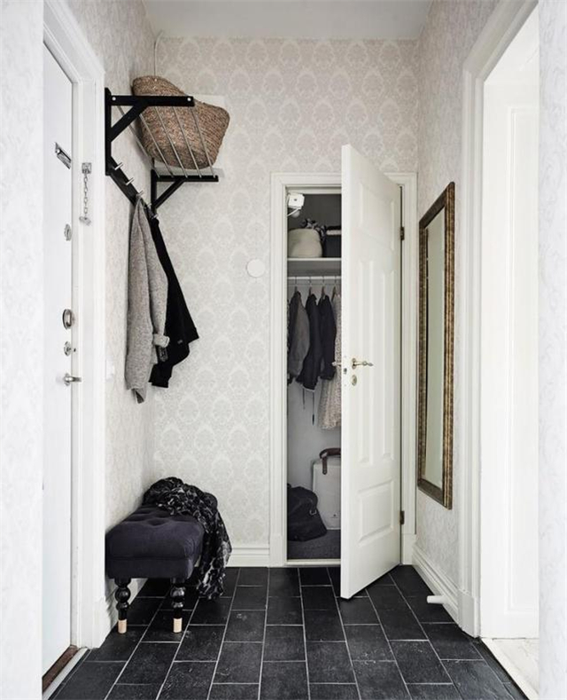 不得不說一個房子的戶型好不好,從進門的那一刻開始就已經知道了。玄關完全不用花費太多的精力,貼上墻紙后,我在這里安裝個衣帽架,放上換鞋凳,就連衣帽柜都是準備好的,旁邊的儲藏室做衣帽間剛好,省了打柜子的2000塊錢.
